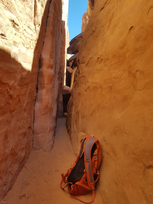 Дальше по плану была Sand Dune arch. Арка такая же, из песчаника, но находится она в каньоне, где на дне сплошной песок. На Антилопный каньон похоже - тоже красный песчаник, тоже песок, тоже слот-каньон.