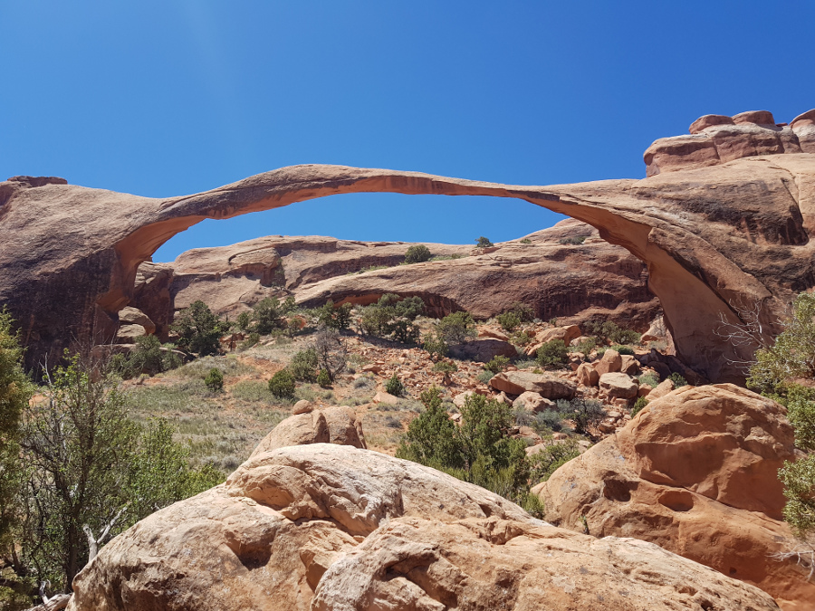 Landscape arch, под нее не пускают, по крайней мере, официально. С правой ее части в девяностых обвалилась уйма камней, и эта часть кажется похудевшей.