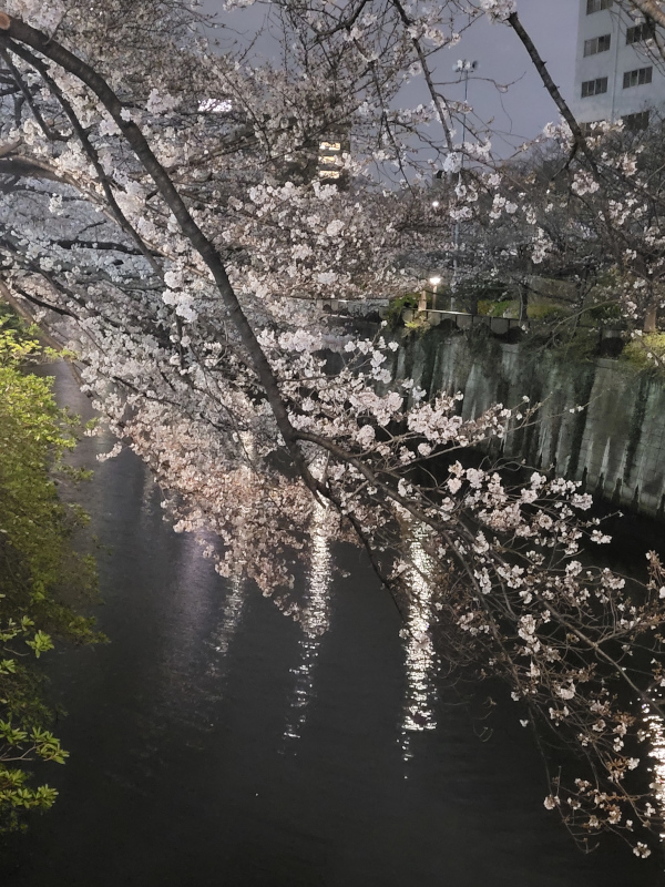 Вечерняя сакура в Гинзе. Мы уже узнавали улицы, по которым ходили.