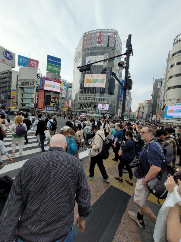 Сибуйский диагональный пешеходный переход стремятся сфотографировать все. Заранее на главный небоскреб мы билетов не купили, а внезапно попасть на него было невозможно. Быстренько нагуглили, из какого здания можно посмотреть вниз. Здание - смесь офисов и торговых пространств. Если не знать, куда идти, не дойдешь :)