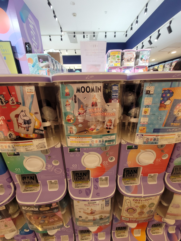 Среди сотен японских игрушечек, продающихся в ящиках-автоматах гачапон, нашлись мумитролли. Автоматы работают за наличные.